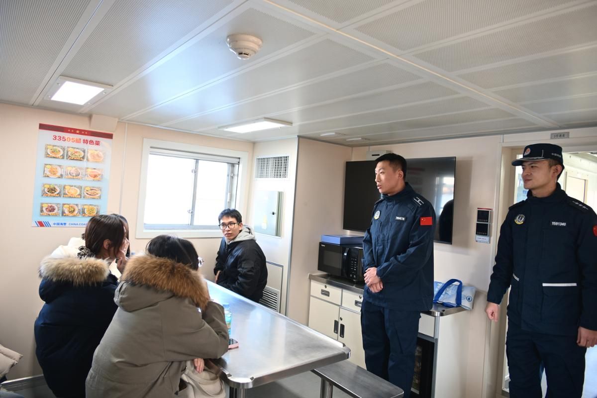 师生随后登上海警“蓝鲸艇”,正在法律员指导下顺次参不雅船面功课区、船员糊口舱、批示节制台等主要区域。通过近距离察看舰载设备、住舱取操控系统,师生对海警舰艇的功能结构取执勤前提构成了曲不雅认识,也亲身感遭到海上持久功课对人员身心本质的严苛要求。正在批示节制台前,进一步了海警海上勤务的专业性取系统性。师生深刻体味到海警法律员正在空间无限、动荡的舰艇上苦守岗亭的艰苦,以及他们为海洋平安所付出的日常奉献。