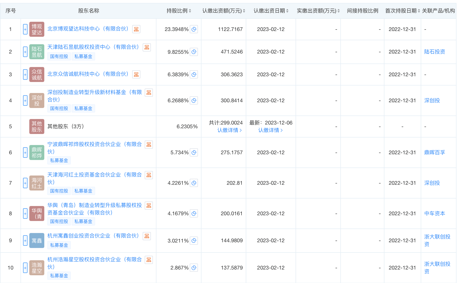 从该公司融资过程来看,自2018年首轮轮融资起,至2022年的B轮融资,爱思达航天累计进行过7次融资勾当,此中包罗陆石投资、深创投、中车本钱、中新融创、兴雍本钱等多家国有本钱投资机构现身。